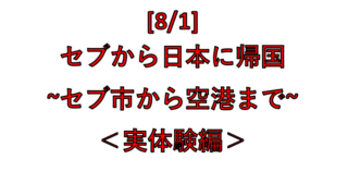 フィリピン・セブ[8/1]セブから日本に帰国 ~セブ市から空港まで~ <実体験編> セブから日本に脱出(帰国)のため計画はうまくいったのか? 計画に狂いはなかったか? 今回は実体験をお届けする。 計画のまとめ(前回記事) 自宅(セブ市) ↓ 荷物を持って徒歩。 ボーダー ↓ タクシー 友人宅(必要な... 2020.08.03フィリピン・セブ